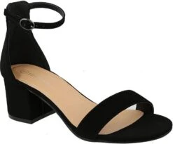 Style this heel up or down for almost any occasion. Features a double strap upper and faux leather material. A square toe a thick heel makes for easy walking. Heel height 2.5 inches. Pair these with a long flowy dress and a cute bag.