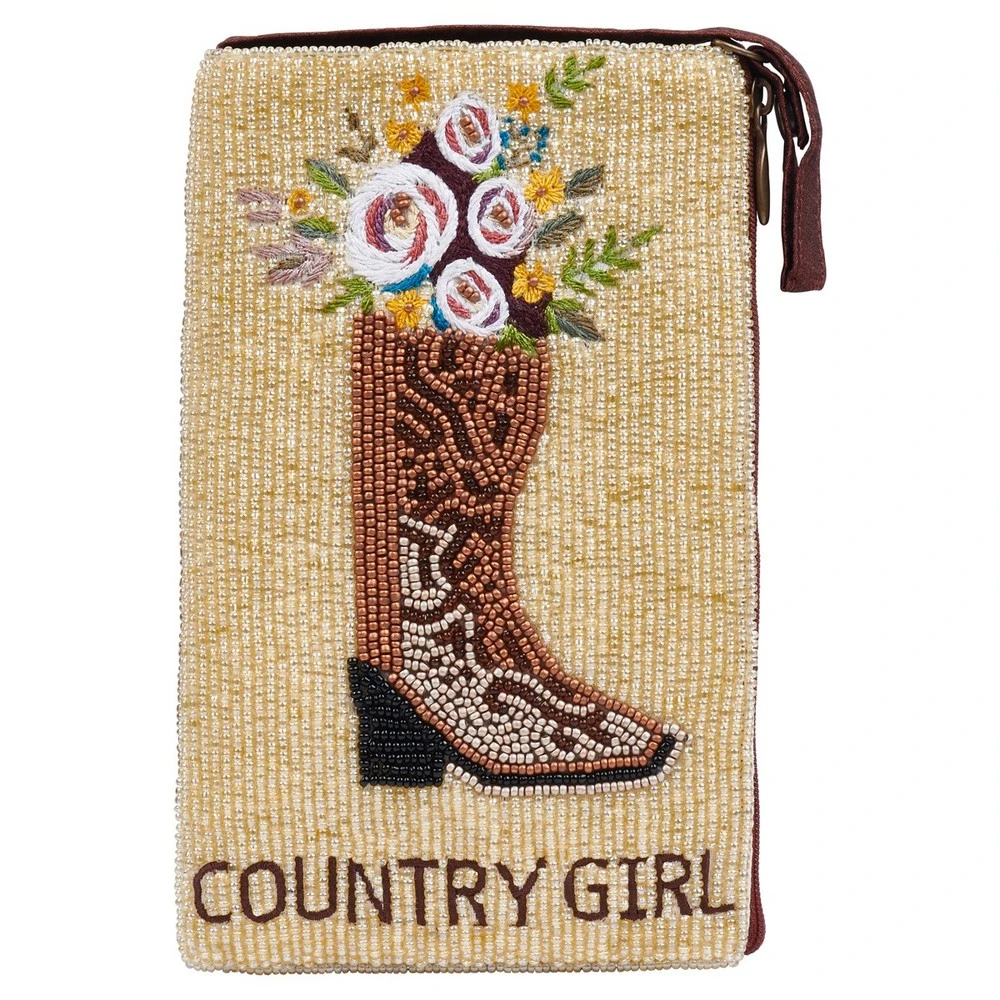 The Club Bag holds your essentials in style. Hand beaded by artisans in India, this versatile smart phone bag can be worn cross body or as a wristlet. Includes 54` cross body strap that can tuck inside when not in use, a short strap that unsnaps so the bag can be attached to a larger bag or belt, and a separate, secure side zip pocket for cash and credit cards.